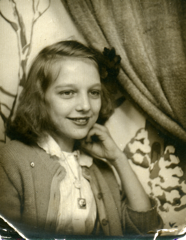 Repaired damage in corners and restored bottom section. Repaired blemishes on face, hair, shirt and background. |