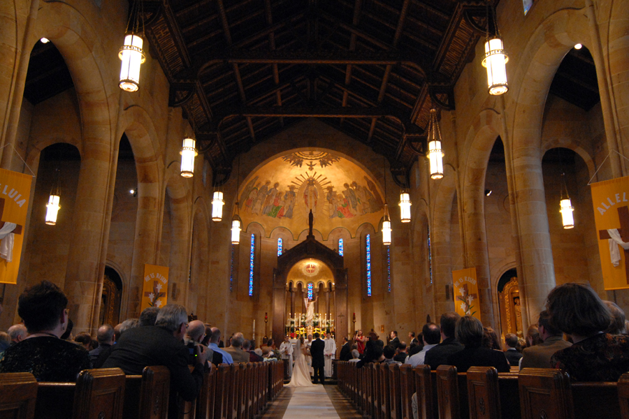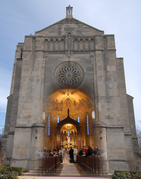 Combined the lower and upper photographs to create a view inside the church. By selecting the desired part of the inside photograph and blending it onto the church photograph, a collage is created. |