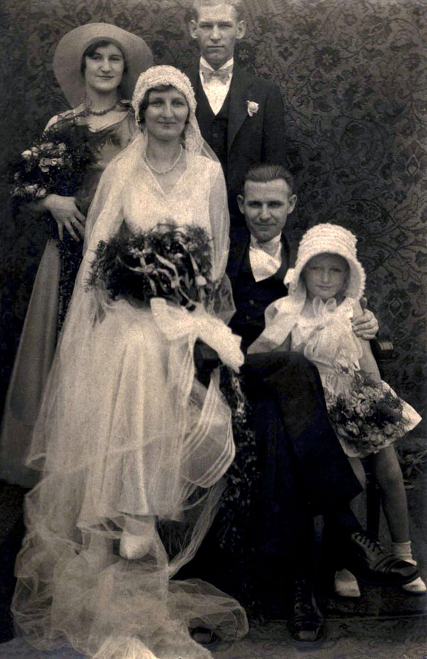Removed person and cars from the rightside of the picture. Brightened portrait and cropped photograph to make couple the focal point of the photograph. |